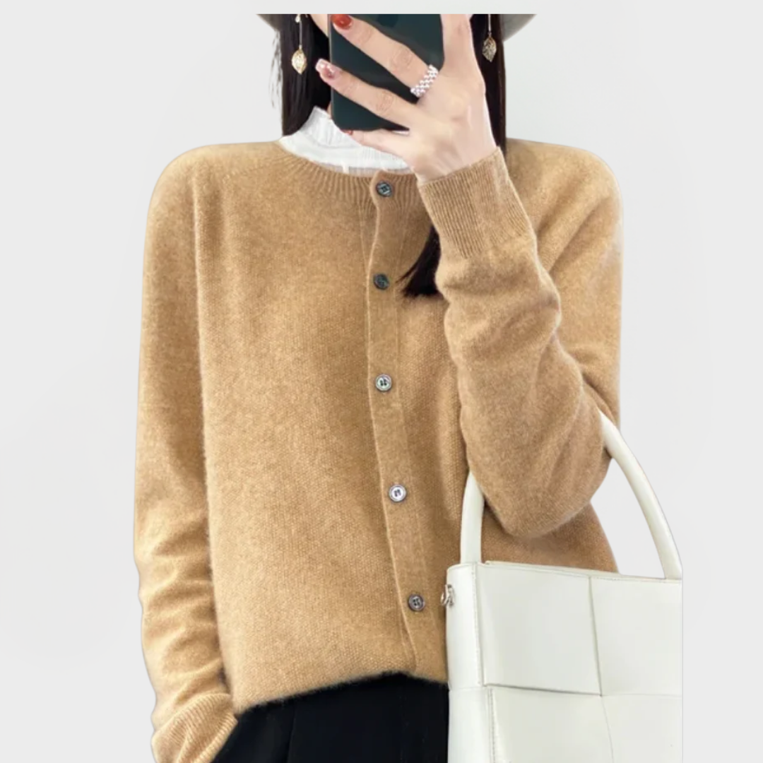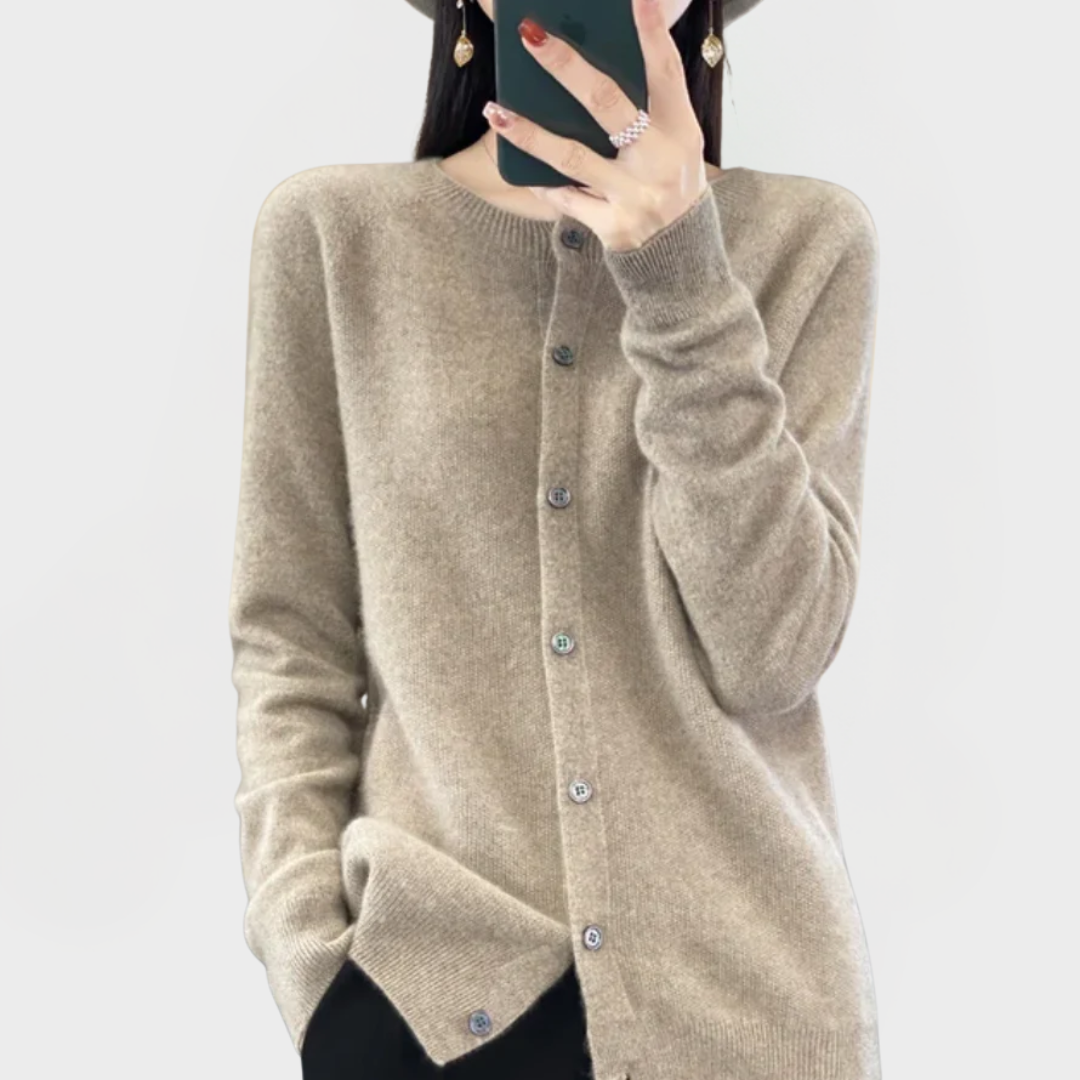 With a classic round neckline and smooth button-down front, Margot flatters without trying. Whether you're dressing up, winding down, or layering for a cozy day out, this cardigan moves with you — never against you.