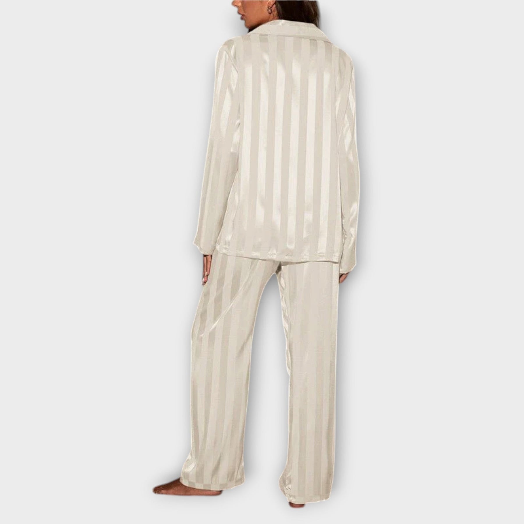 Unwind in style with the Bella™ Striped Satin Pyjama Set—the ultimate in refined relaxation. Treat yourself to unmatched elegance today!